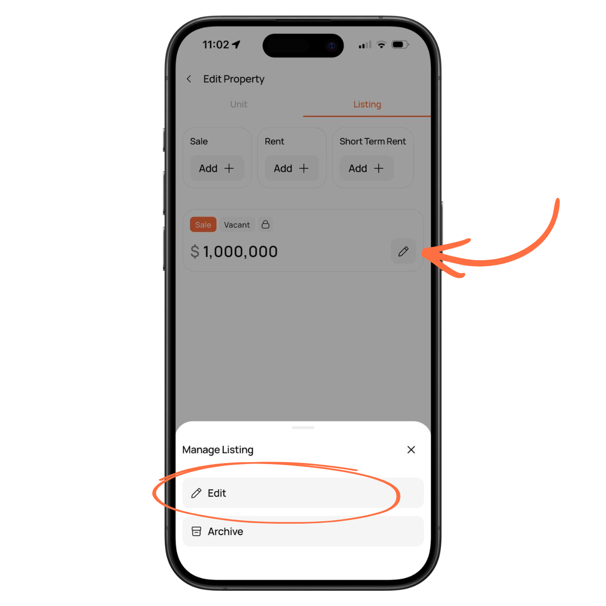3.Go to the Listing tab, then tap the edit icon on the listing card.