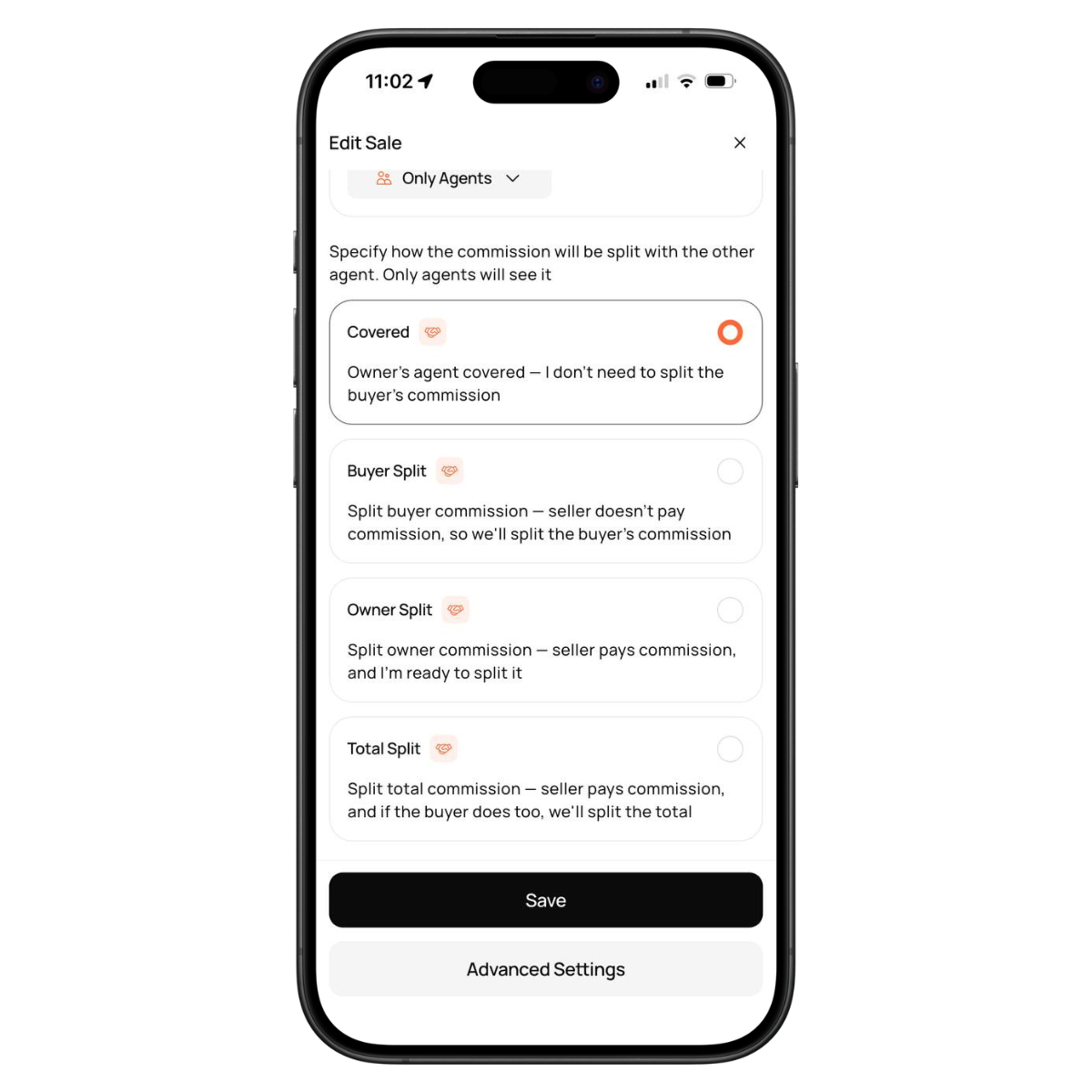 5.Choose how you want to set the commission split with the other agent: